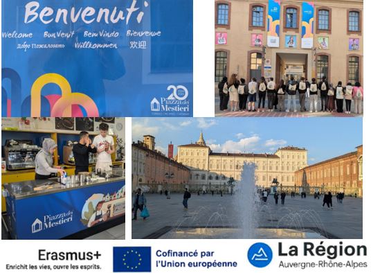Découverte de la Fondation Piazza dei Mestieri qui porte un dispositif de formation deuxième chance à Turin pour 6 jeunes de l’E2C qui ont rejoint leurs homologues de l’Allier et de la Savoie. Une semaine d’ateliers, de visites, d’échanges en Italie dans le cadre du dispositif Erasmus+ porté par la Région Auvergne Rhône alpes.